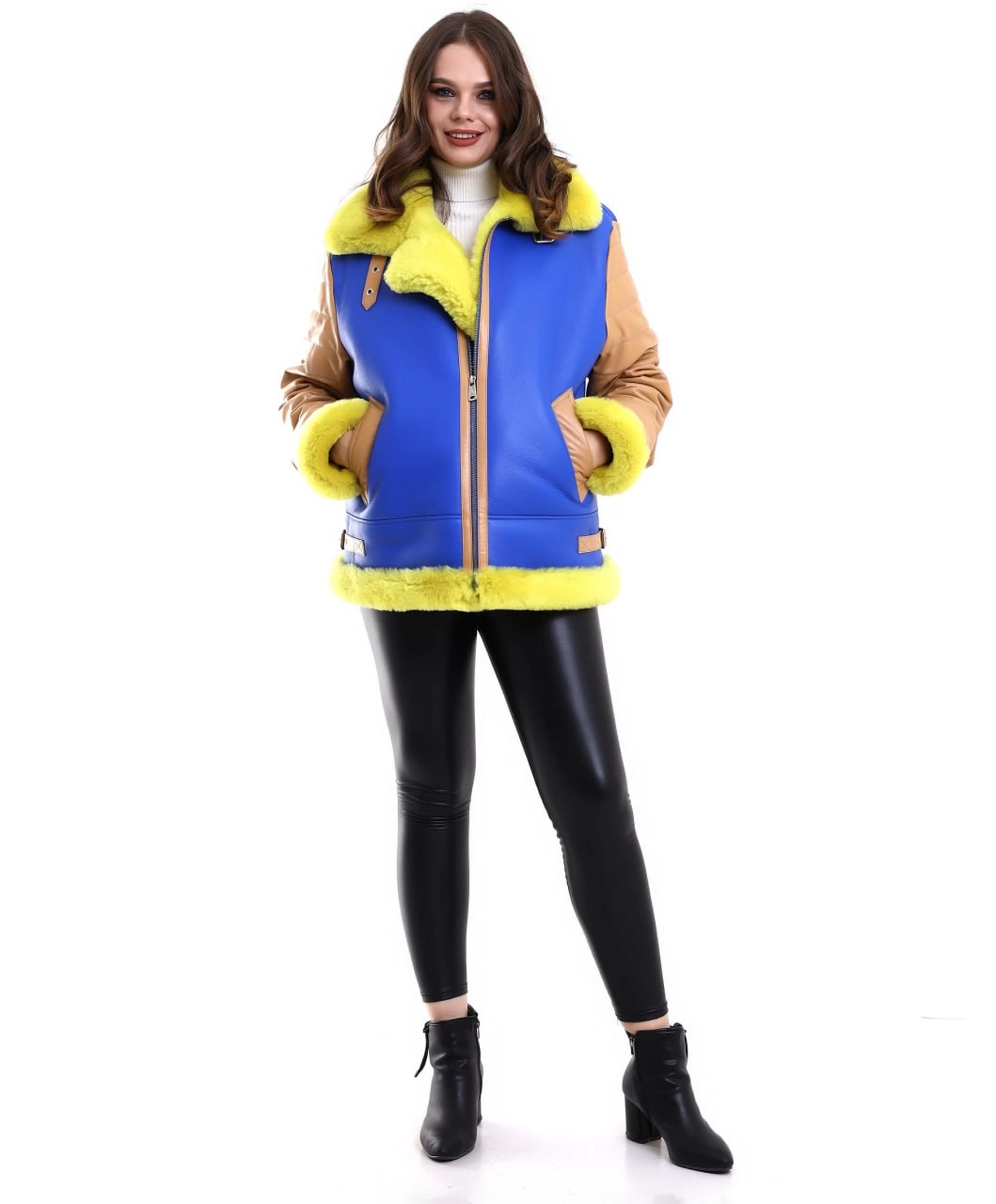 Luviroli Kadın Koyun Derisi Pilot Hakiki Kürk - Sarı