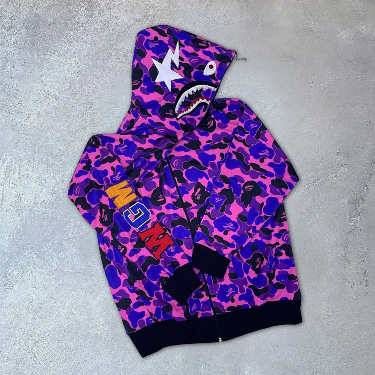 Luviroli İki İplik Zıp Fermuarlı Nakışlı Kapüşonlu Hırka - Mor