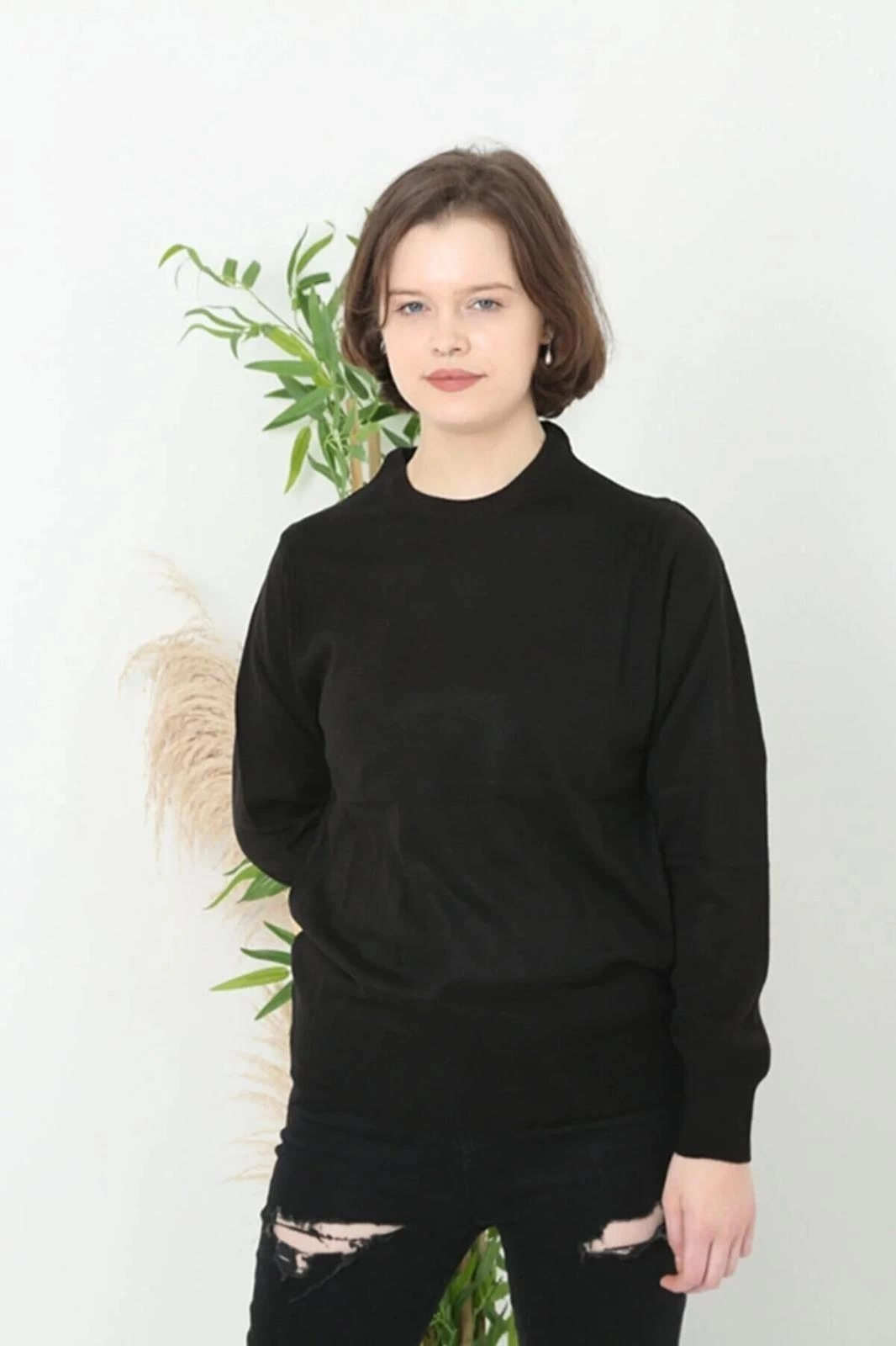 Luviroli Kadın Bisiklet Yaka Düz Kazak - Siyah