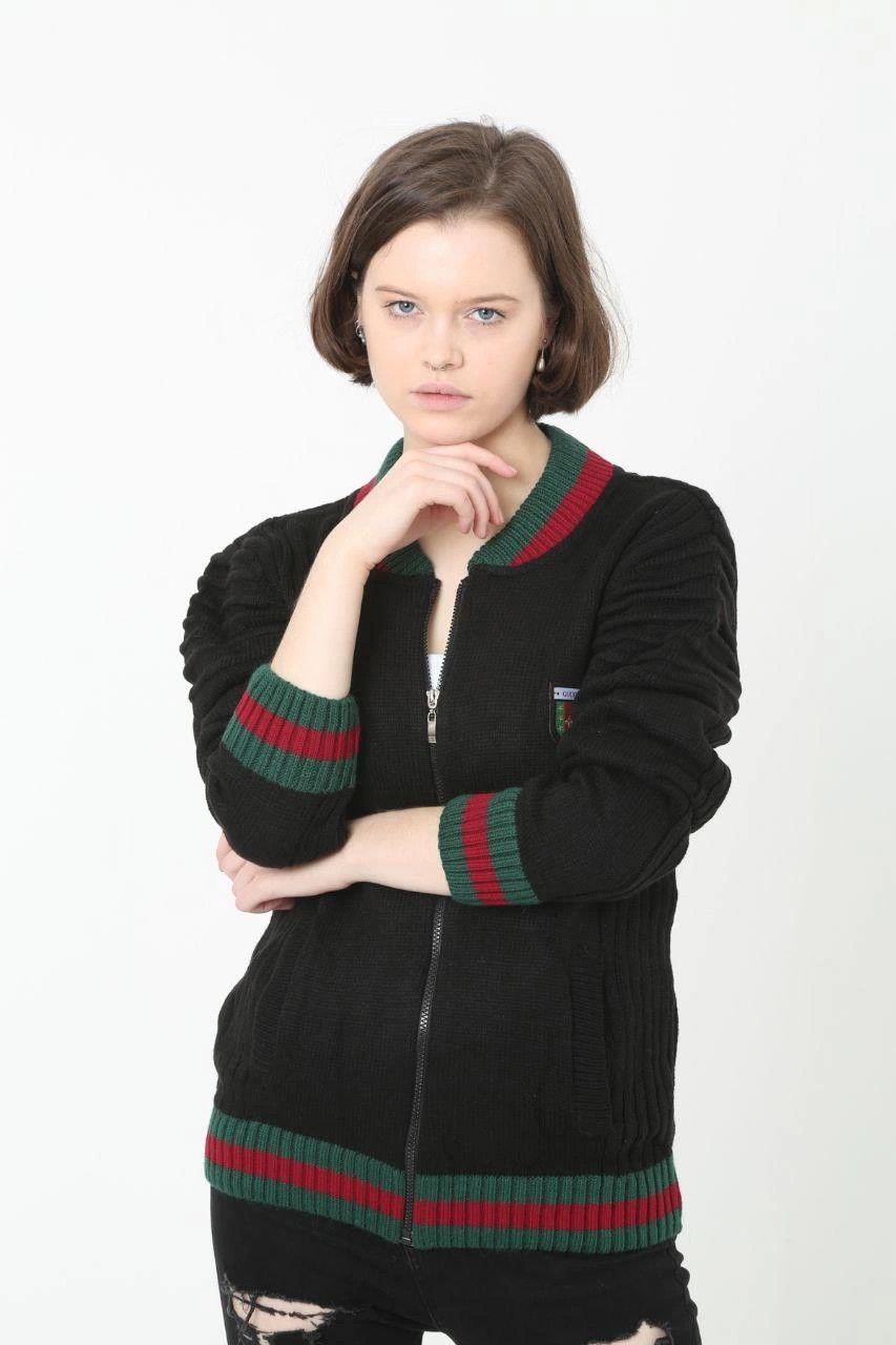 Luviroli Kadın Tam Fermuarlı Triko Hırka - Siyah