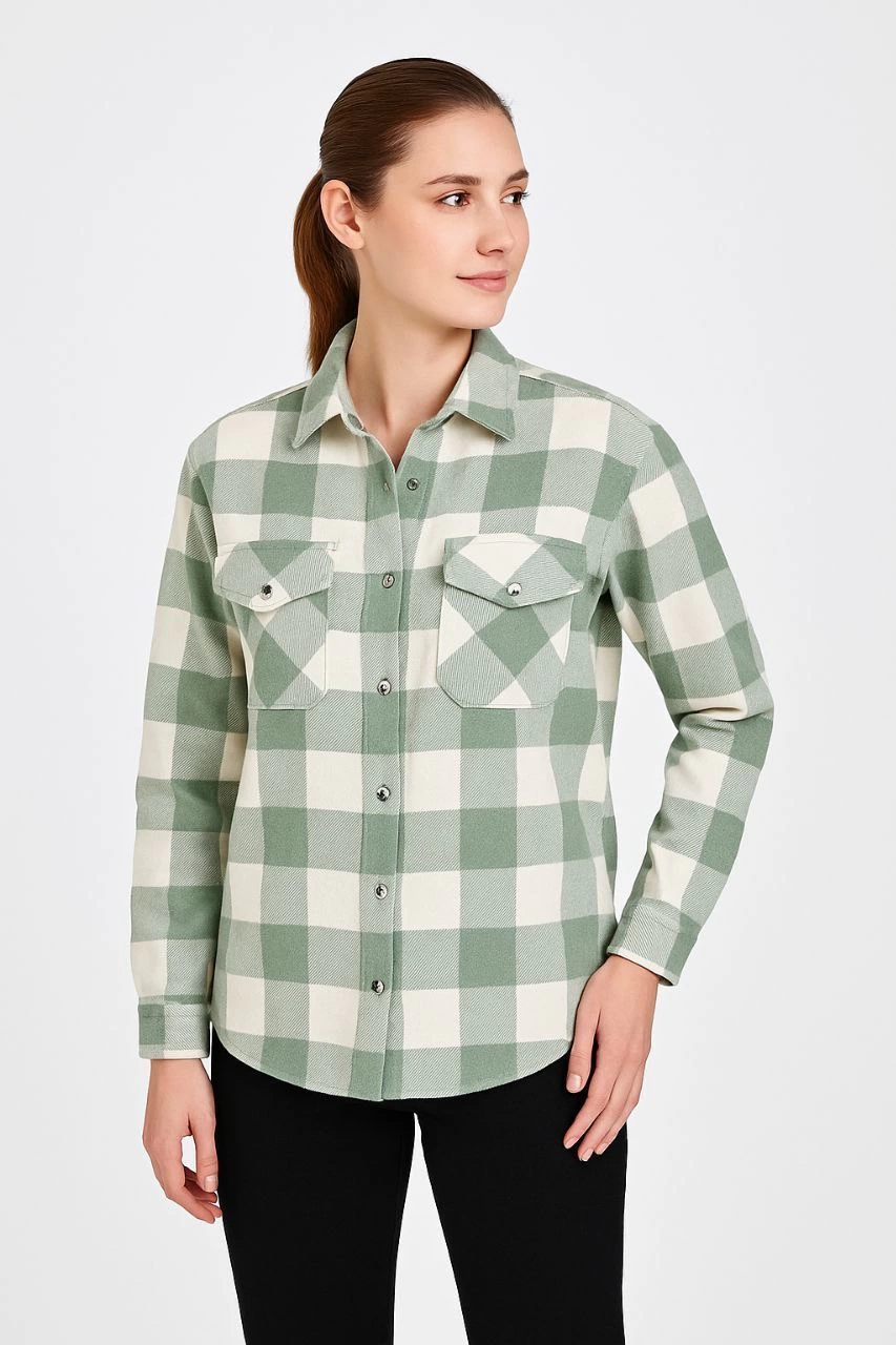 Luviroli Kadın Uzun Kollu Oduncu Gömlek - Su yeşili