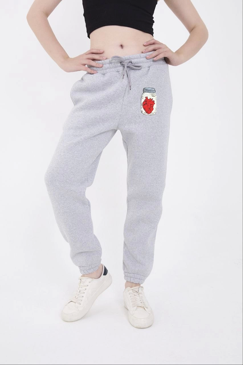 Luviroli Üç İplik Lastikli Baskılı Eşofman Pantolon - Gri