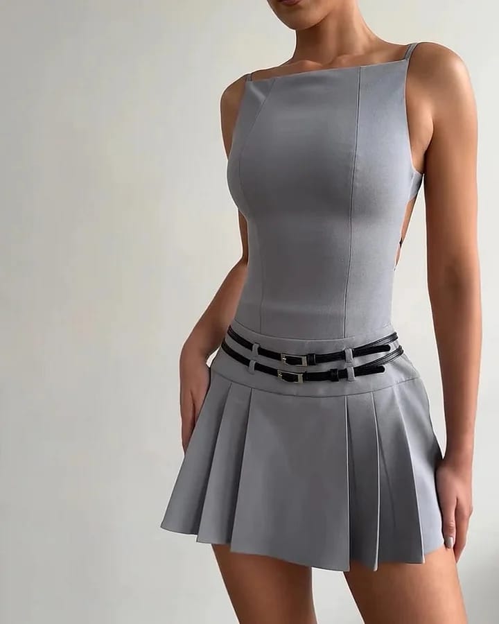 Luviroli Kolsuz Açık Sırt Mini Gri Etek & Elbise